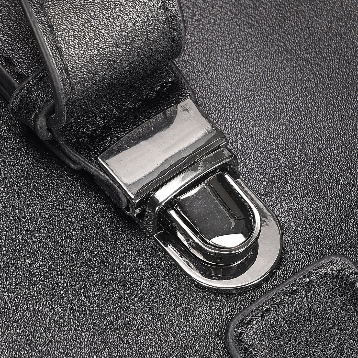- Crafted with water resistant PU Leather and polished silver hardware